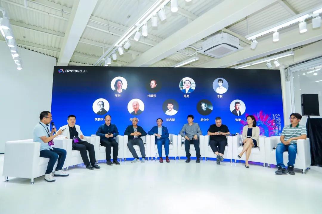 随后,围绕开幕日的高峰论坛在西岸·油罐艺术公园瓷屋举行,范勇院长受邀作为分享嘉宾,在此次论坛上提出了他对NFT加密艺术的理解与思考。