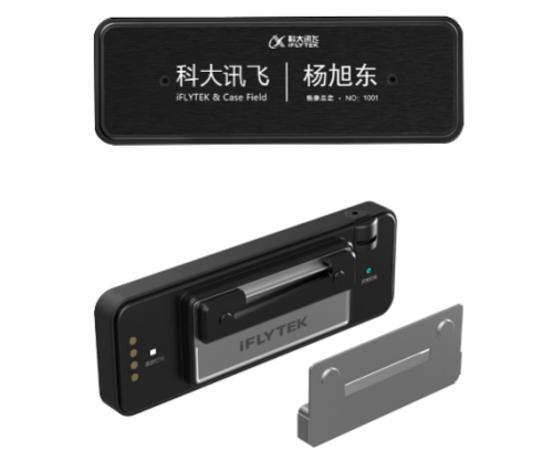 作为前端拾音工具的智慧工牌,又称AI工牌、工牌录音笔,是科大讯飞基于ASR、NLP算法引擎,构建的2+1麦克风阵列组合降噪拾音设备,支持便携佩戴,可在移动接待过程中实时采集音频数据,普通话转译准确率高达98.8%。