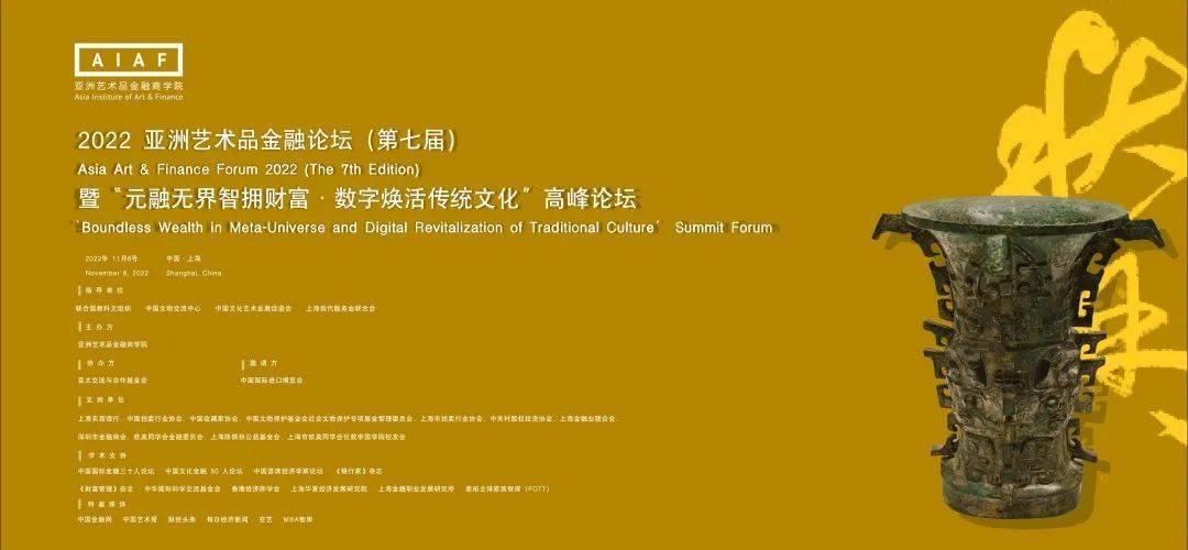 2022年11月8日,第七届亚洲艺术品金融论坛暨“元融无界智拥财富·数字焕活传统文化”高峰论坛在上海虹桥西郊庄园丽笙大酒店盛大举办。