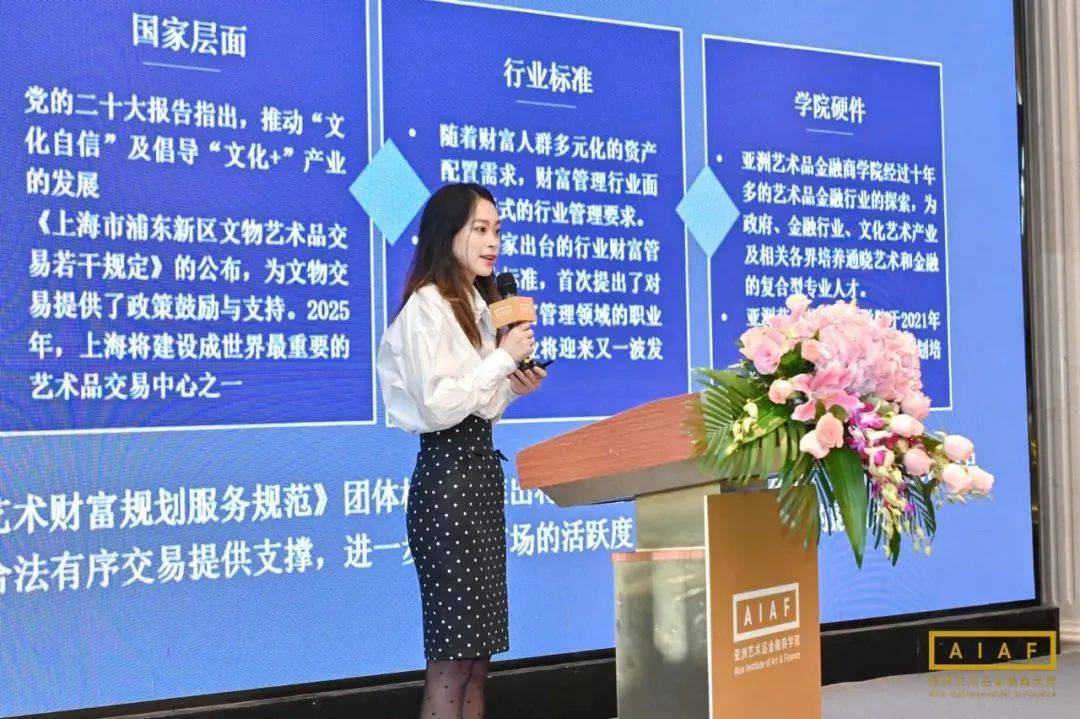 亚洲艺术品金融商学院团队代表倪雪儿 介绍团体标准,《艺术财富规划服务规范》发布和《艺术财富规划师行为规范》团体标准申报的相关情况