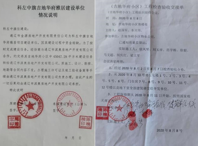 据多家媒体报道,2014年4月初,通辽市科左中旗保康镇棚户区改造项目对外发包,科左中旗国君房地产开发有限公司(以下简称国君公司)承接了该项目,项目名称为吉地华府小区,工程建筑总面积为87696.82平方米。