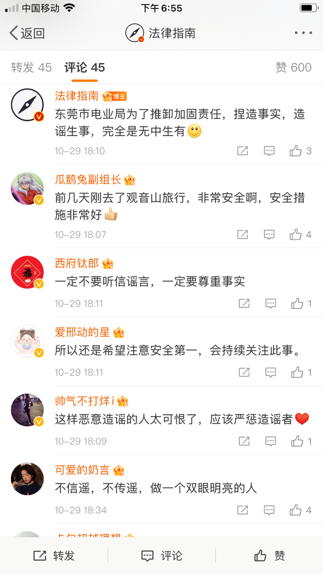 一、连接上文,“东莞观音山80%的区域,连续22年饱受无市政供电的困扰”及“供电部门向当地政府造谣观音山电si人”等事件在微博上不断发酵后,引起亿万网友们对供电部门的声讨问责。东莞市供电局的某些领导坐不住后,终于在2022年2月23日就部门“不供电及违建”等问题向东莞观音山进行回复。