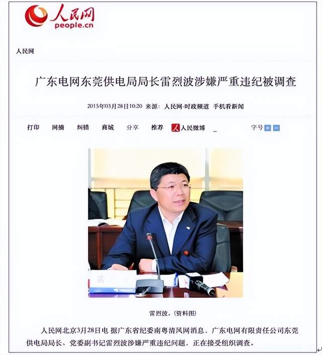 供电部门如此任性行事,不禁让人联想到,2015年3月,广东电网有责限任公司东莞供电局局长雷烈波涉嫌严重违纪问题,接受组织调查。