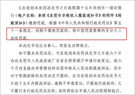 告知书最后,按照林林总总的罚款条目,东莞自然资源局一共开出了高达55万多元的巨额罚款,其中每一项内容都是顶格处罚。