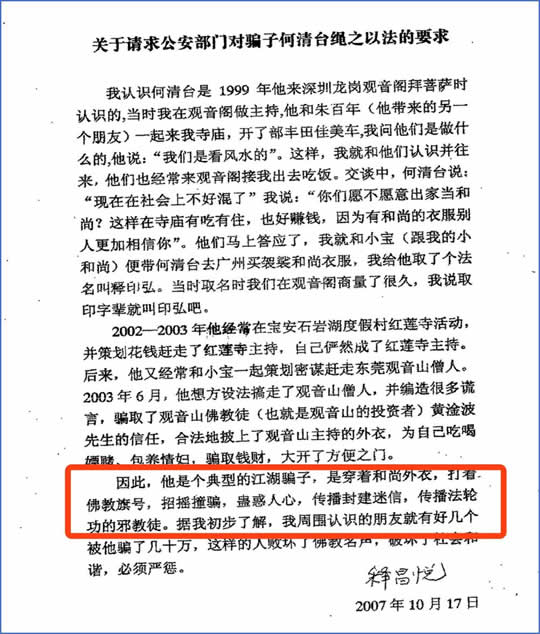 2020年初,曾任观音寺主持的释延祥法师口述一份检举信并签名确认,彻底揭开观音寺多年来贪腐的重重黑幕。