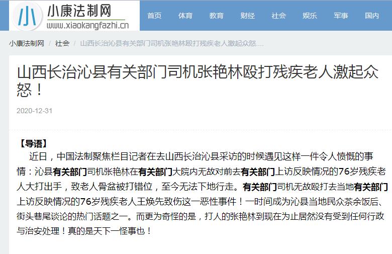 山西长治沁县有关部门司机张艳林殴打残疾老人激起众怒!