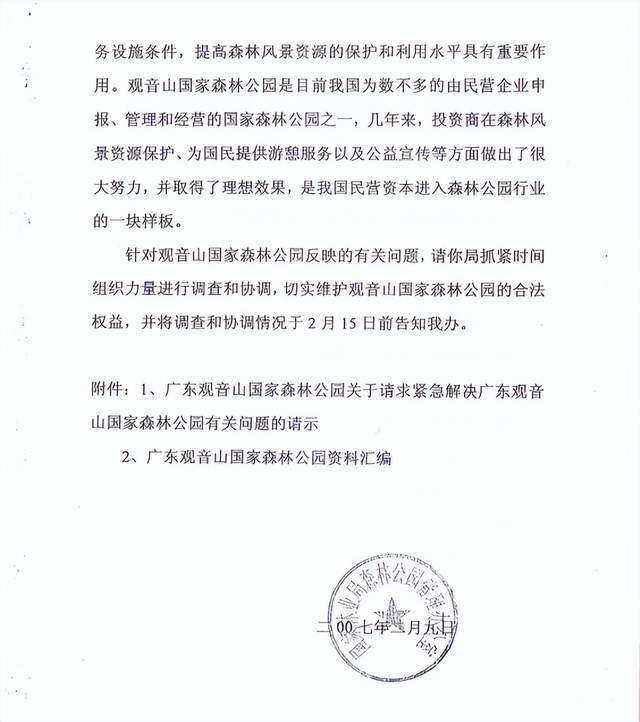 2004年6月起,观音山又向樟木头镇政府3次书面报告申报国家级森林公园的情况和面临的困难,希望镇政府出面支持,向东莞市林业局报送有关申报资料。但镇政府也以没有先例为由拒绝。