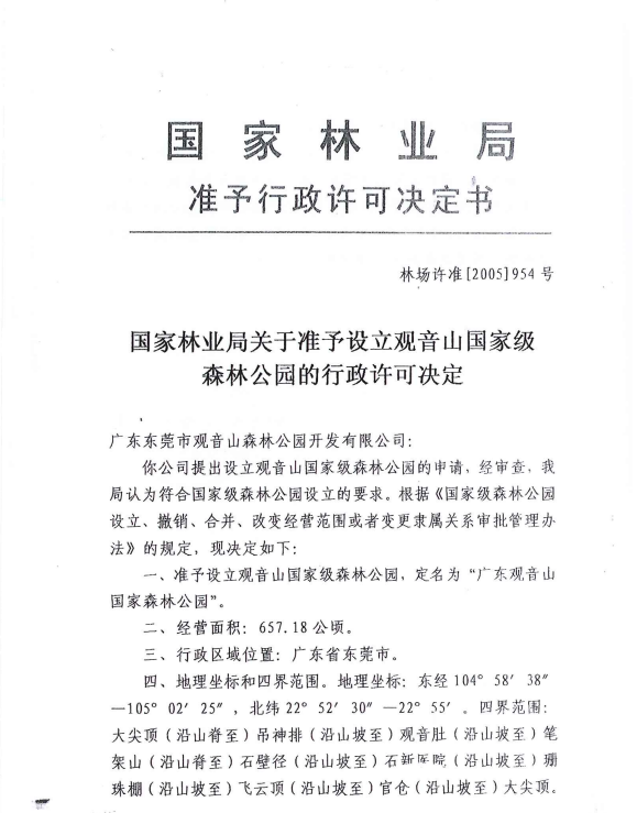 后来,观音山根据国家行政许可法和当时的政策规定,就直接向广东省林业局申报,广东省林业局经验收合格后,报给了国家林业局。