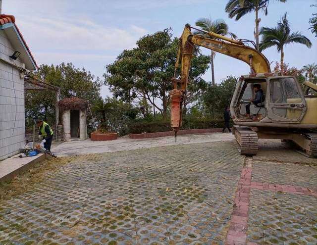 2021年1月6日,樟木头镇政府二违拆迁办带着施工人员和挖掘机开进观音山森林公园,将进出承包前就有的法雨台办公楼的道路和停车区拆了精光。