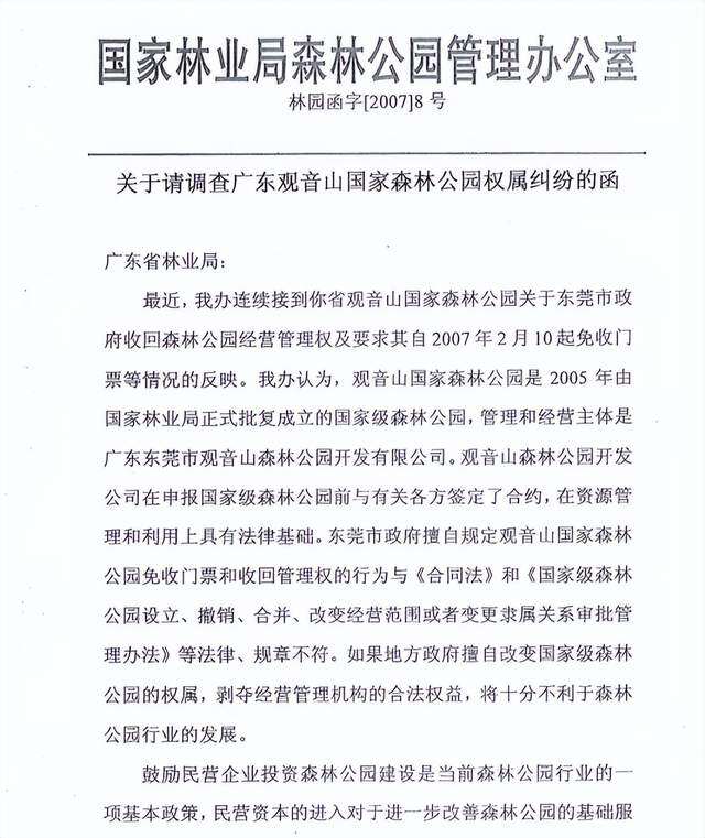之后,时任东莞市林业局局长罗xx就多次到广东省林业局要求撤销观音山森林公园的国家级森林公园的称号,并在多次行文中拒绝承认观音山森林公园为国家级森林公园。而东莞市人民政府竟然以政府文件的方式,向国家林业局直接发文要求“撤销观音山国家级森林公园”的行政许可。