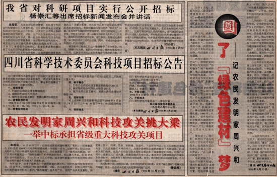 1998年5月5日,时任国务院总理朱镕基到四川视察工作,因农民焚烧秸秆,飞机不能降落,才有了四川省重大科技项目面向社会招标,周兴和发明的专利项目以最高分中标。当时朱镕基总理说:“谁解决秸秆问题,国务院奖励1千万元。但周兴和至今未得到1分钱!