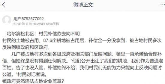 截至目前,记者也没有等到哈尔滨市松江区宣传部关于村民被占土地补偿情况的“答复”。