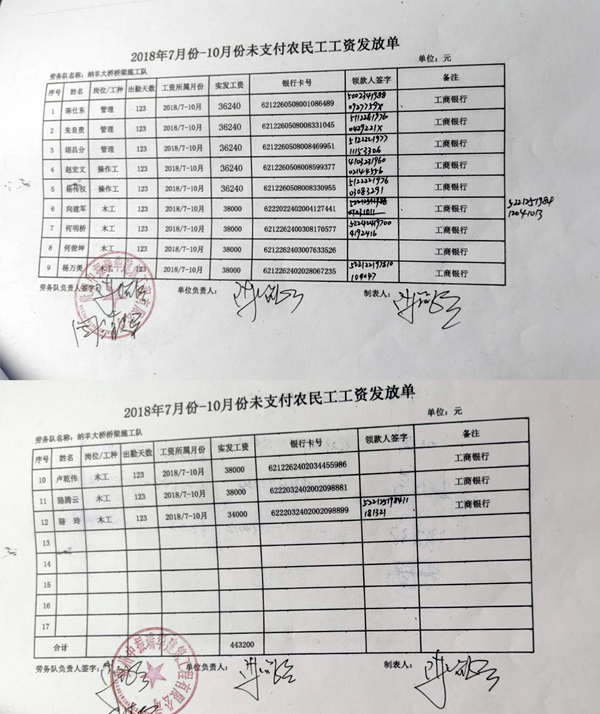 拖欠工资明细