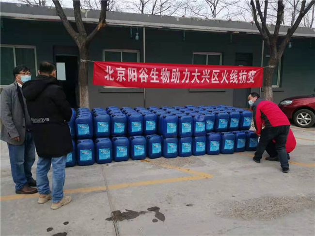 在这个关键时刻由中国关心下一代健康体育基金会主办,校园安全工程执行委员会、北京医药行业协会、北京阳谷生物科技有限公司、中国关心下一代健康体育基金会-红色基因专项基金、北京富国堂医药科技有限公司等多家项目单位向北京大兴区医药生物基地管委会无偿捐赠10吨竹芳牌微酸性次氯酸消毒剂,用于疫情防控核酸检测现场及社区日常消杀工作。