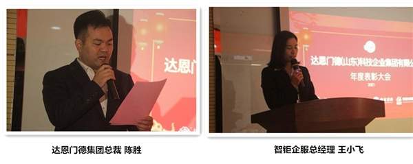 达恩门德集团董事长马朝辉、达恩门德集团总裁陈胜、企服总经理王小飞、家动力常务副总经理韩昱、企服首席运营官李岩松和达恩门德集团全体员工与会。