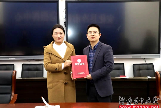 ▲安化县人民政府党组成员、副县长阳锋向胡德安执行董事颁发荣誉证书