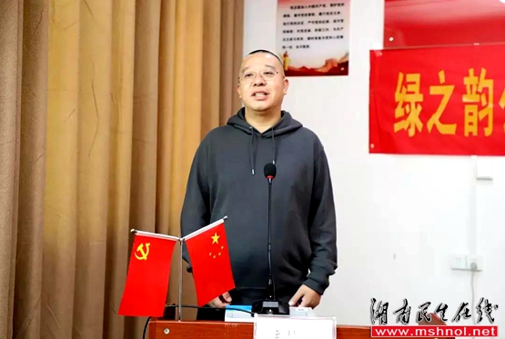 ▲湖南省政协委员、致公党互联网+专委会名誉主任、绿之韵集团董事长胡国安讲话