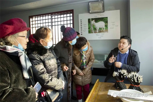 右一为刘建朋为学员们讲解毛笔制作过程