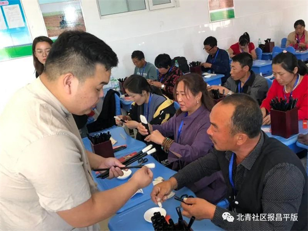 2019年11月,御笔坊在河北省怀来县五福养老院残疾人创业基地开办了毛笔技术培训班。