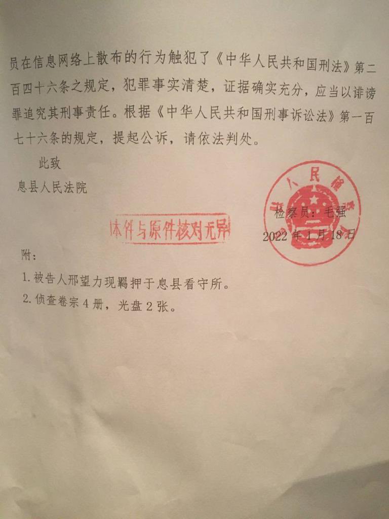 2022年4月8日,本网获悉:7日上午九时许,河南省信阳市维权人士邢望力被控“诽谤罪”一案在息县法院闭门审理。邢望力透过视频在息县看守所受审,该案中的所谓受害者、证人无一人出席该庭审;十多名维权访民前往该院声援邢望力,当地政府如临大敌出动数十名公安人员,其中一些维权访民因拍摄照片被警方强夺手机并删除照片;息县法院对外声称:“今天特殊情况,法院暂停一切业务,拒绝非官方人员进入。”在官方的强力阻拦下,未有一名维权访民能够进入法庭旁听。