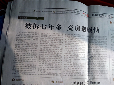 老医院家属楼拆迁安置一事引起了新闻媒体的高度关注。2019年12月30日,河南省最权威的主流媒体-----河南日报,在版面显要位置以《被拆七年多 交房遇烦恼》为题给予重点报道。网文《问登封市嵩阳街道副书记许喜斌、拆迁办负责人郑保安》,对涉及拆迁安置有关的8个问题都作了详尽披露,点击量高达2300多万次。