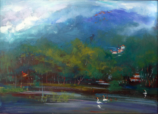 时贯宇《望断南飞雁》油画2016年150cmx75cmx3