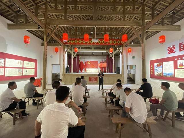 这是2023年7月29日抚州商会部分会员来到上饶市广信区望仙乡沙洲红军街旧址,开展红色主题教育活动。