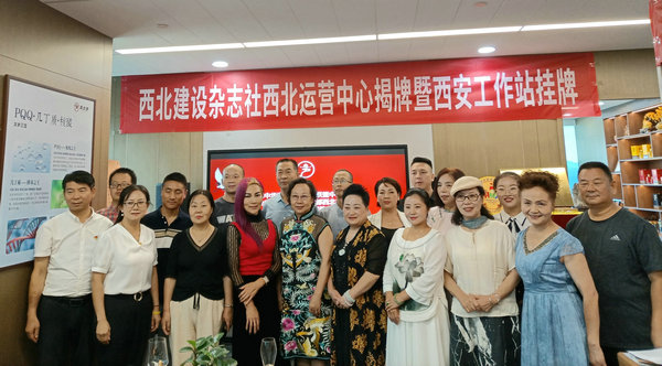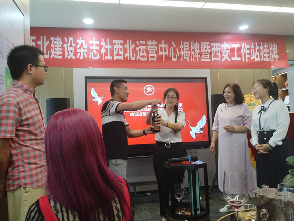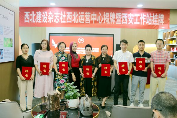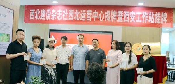 西北建设杂志社总编许衙评,陕西太岁集团董事长唐晓芳,加拿大皇家兄弟俱乐部总裁、加拿大皇家兄弟国际文化艺术中心总裁张旖桐,全球华人港澳台侨联谊会西北联盟主任孙树梅,西安外事学院语校友会副会长张峰,西北建设杂志社执行总编李虎山,西北建设杂志社西北区主任焦点共同为活动揭牌