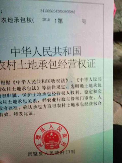 近日,安徽省灵璧县禅堂乡八一村村民张召全的女儿张丽反映;她家是在 2002年通过正当合法的手续取得的土地,并且已经实际耕种使用近20年时间,同时在2016年5月份已经领取了《农村...