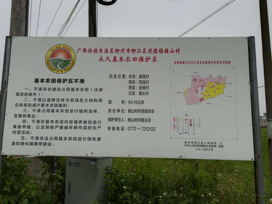 当地农民把基本农田建设得非常漂亮,全国各地的游客到了进德镇各乡村观光旅游,都流连忘返。还没有征收前,往届政府都在每个村委立基本农田保护区的实名牌匾。我们只拍照了几个牌匾,作为实物见证。长期以来进德镇是柳江区最大的水稻种植区,最大的产粮大户,在西南喀斯特地区来说很少有这么好的水溪流淌的水稻种植平原地区。在手机百度里,都可以搜索到有关柳江区(原来的柳江县)进德镇的真实写照,以前流传的柳江县一都米指的就是现在进德这地方。