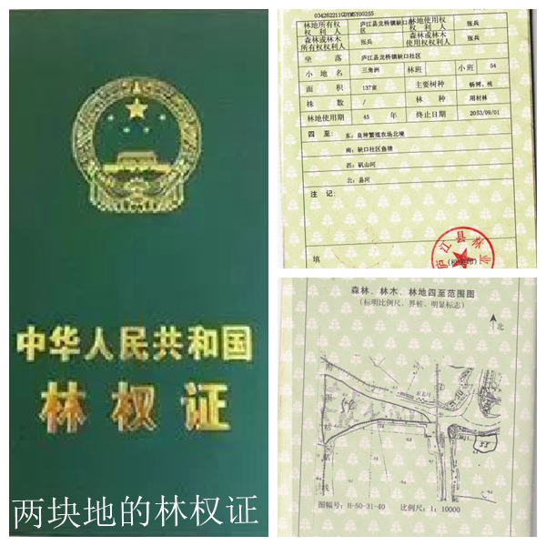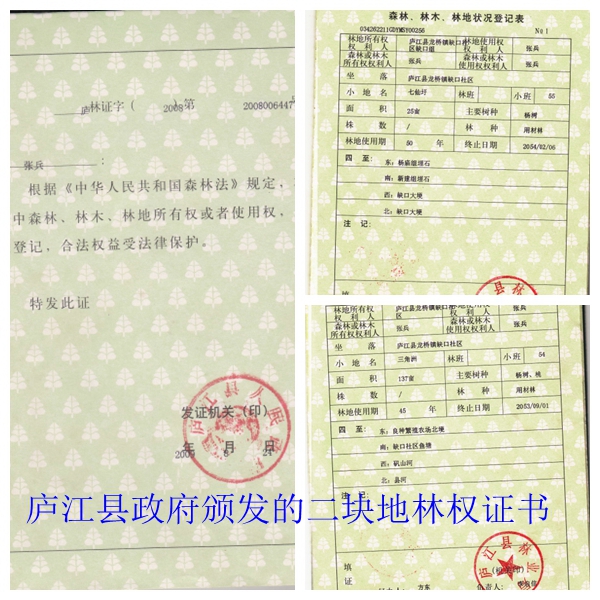 2009年8月24日,庐江县人民政府向他颁发庐林证字2008第2008006447号及第2008006448号《林权证》,确定他为两块林地的使用权人。