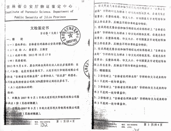 (3)我们多次向大连市中级法院反映陈茂芝债权1亿3千万元、广东拓达医药有限公司1亿多元的债务系虚假债权并提供相应的线索,同时提供公安鉴定报告证明赵卿全持有股权是虚假的。然而大连市中级法院对赵卿全虚构的多笔债权的真实性不予审查。