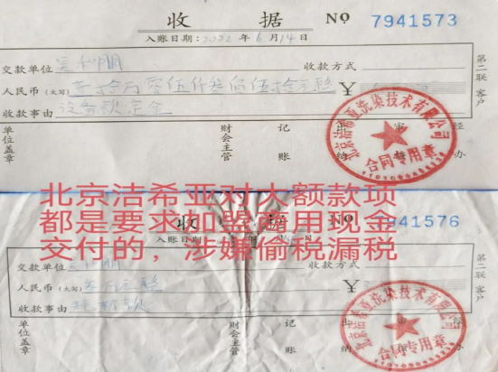 2021年7月8日,我接到业务员徐显胜去北京洁希亚国际洗衣总部培训学习的通知,我满心欢喜的从长沙坐火车到北京去学干洗技术。到了北京,下了火车,有人把我们接到了北京洁希亚国际洗衣总部,徐显胜拿出很厚的一沓合同,让我匆匆看了一眼,就要我直接签了合同,接着就带我去财务部又交了41358块钱,然后才安排我们住在一个只有十几个平方的平房里,一个房间住六个人。