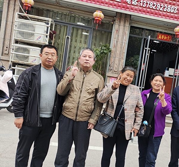 4月11日,维权人士孙义良(左一)、律师江天勇(左二)等人前往信阳监狱接邢望力出狱。(受访者提供) 【大纪元2024年04月12日讯】(大纪元特约记者夏惇侯、李圆明采访报导)河南...
