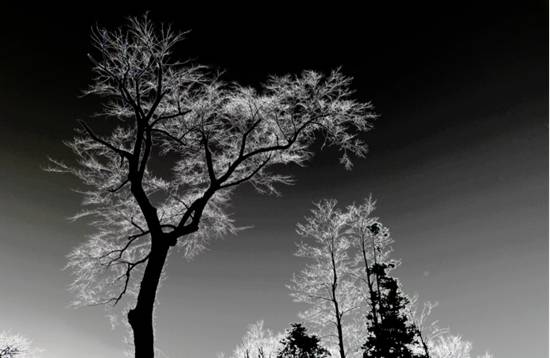看看上面的树枝对光反射后的光效。目前摄影界没有这种风格作品,科学界也没有见到这种树枝反光的作品。这张图只是许多张作品中的一张,我已经发现和掌握了制作树枝反光的技法。