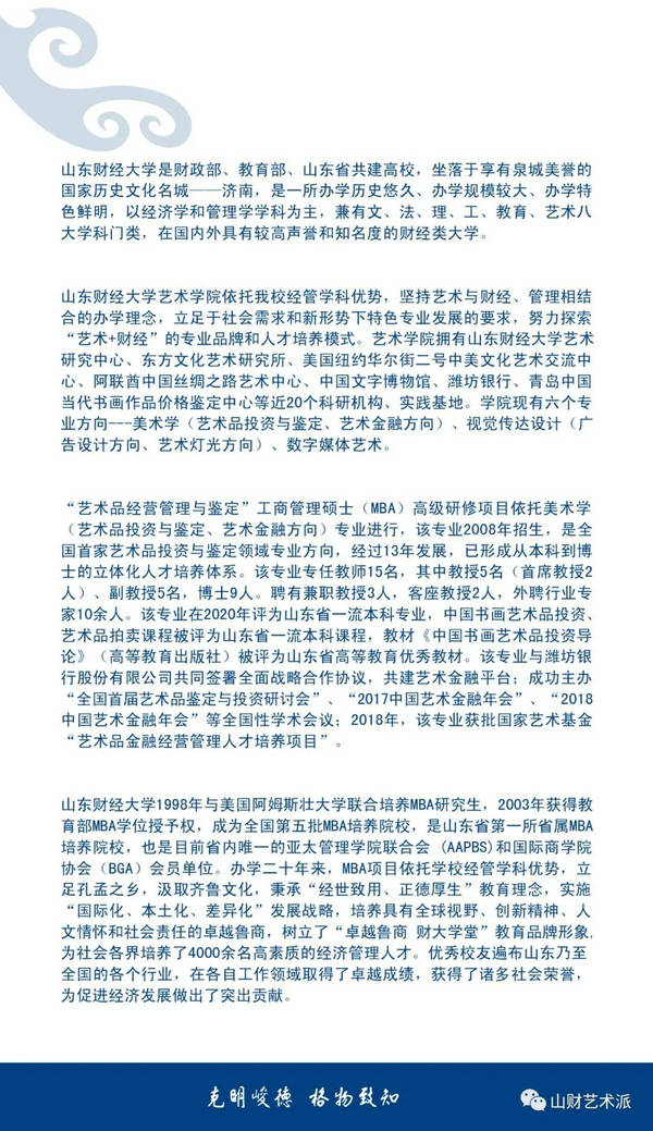 山东财经大学“艺术品经营管理与鉴定”工商管理硕士高级研修项目招生简章