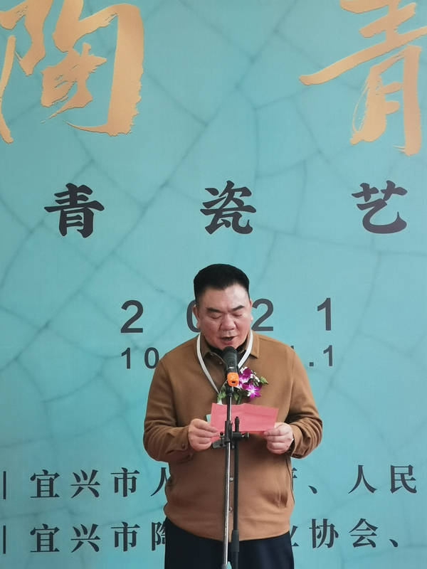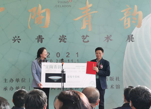 2021年10月28日14点30分,由宜兴市人民政府、人民美术出版社主办,宜兴市陶瓷行业协会、人美美术馆承办的宜陶青韵——宜兴青瓷艺术展在北京人民美术出版社人美美术馆开幕。宜兴市人民政府副市长温秀芳,中国美术出版总社党委书记、社长周伟,宜兴市人民政府办公室二级调研员路翀,宜兴市文体广电和旅游局副局长徐英姿,宜兴人人民政府外事办公室副主任杨若凌,宜兴市丁蜀镇人民政府副镇长杭海东,宜兴市陶瓷行业协会会长史俊棠,中国工艺美术大师顾绍培、季益顺,中国陶瓷艺术大师李守才,江苏省陶瓷艺术大师谈志坚以及全国陶艺界等人士出席本次活动。