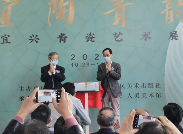 本次展览将持续至11月1日。活动当天,宜兴青瓷作品集新书《宜陶青韵》在活动现场举行了首发仪式。