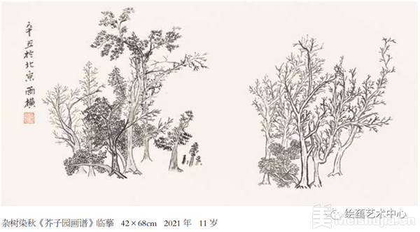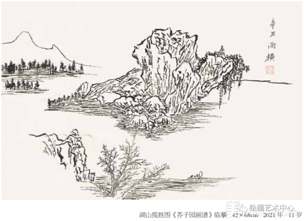 池雨横2010年出生于香港,在校期间得到了王益明、陈旭两位老师的指导教育,近两年又经常去国家画院和中国艺术研究院及中央美院附中,耳提面命于龙瑞、袁学君、杜浩、戴幼楠及孙伟、畅世博诸位先生,使他的作品又有了一个质的飞跃。他钟爱书法与国画,特别是篆行两种书体和《芥子园画谱》,进行了全面系统的临摹,练就了一手过硬的功夫,对骨法用笔,应物象形,经营位置,随类赋彩等等都有了很好的理解。贝蒂.爱德华曾说:“成年学生在绘画的初级阶段并没有真正看到他们眼前的东西,也就是说,他们没有按照绘画所必需的特殊方法感知事物,这个阶段的学生,大多用动漫手法不厌其烦的刻画形象细部,毫无艺术性可言。”而池雨横的学习及感悟力极强,他能够从身边的社会、自然中寻找素材,从前辈的笔墨技巧里寻找灵感,在一步步进入艺术殿堂的同时,体验着临摹学习所带来的愉快情感。