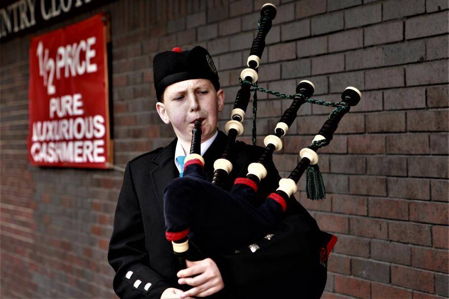 烈日下,一丝不苟吹风笛的苏格兰少年。小风笛乐手,鼓起稚嫩的腮,吹出了五彩缤纷的梦。