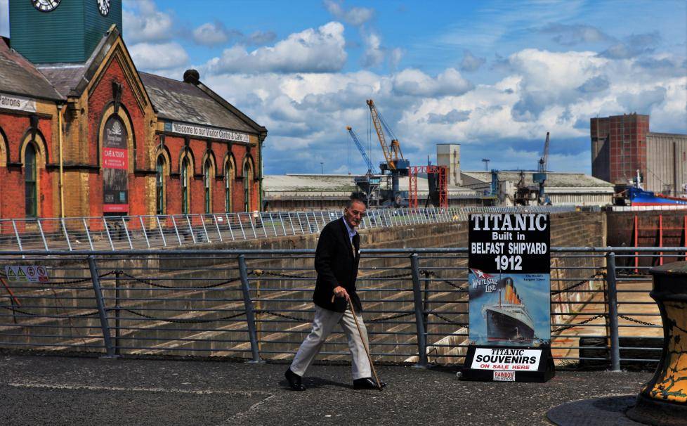 北爱尔兰贝尔法斯特,晴空万里,具有158年历史的哈兰德沃尔夫造船厂早已焕然一新,却单单留下了建造出那艘著名邮轮泰坦尼克号的船坞。一位年迈的绅士身着老派西装策杖在船坞前走过,仿佛穿越回到110年前下水初航的那一天……留下锈迹斑驳的老船坞要告诉后人什么?