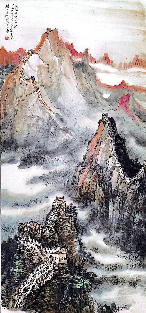 《画说雄安》是一幅极具史诗意义的横幅巨幛,远观此作给人以远古华夏艺术图腾精神的气脉迭宕,会让人体验到作者笔墨造境中的宏阔幽深,神秘苍茫与天人合一,追溯了雄安刀耕火种的遥远历史,满纸烟云,定位了雄安磅礴淋漓的主题感觉;作者以宏阔的审美视野与深厚的学术定力沉潜在历史文脉的源头,对话天地、取精用宏,并用宏大叙事的文学构想拼合精湛的笔墨语言,在有无之间、传统和现代之间演进了水墨艺术穿越五千年文明时空的文化表达,创造性地再现雄安作为丝路首端的辉煌历史;进入承载了丰厚历史的部落,集镇、观民风,体民情,带回来的是悠悠不变的民族文化本质和华夏大地自古至今的元气,流溢出今人面对历史的豪情壮志,从画幅中承载的精神份量上凸显出艺术家的家国情怀与文化担当。