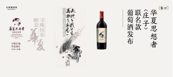 借“逍遥同游——李庚、崔晓东、袁辉、林存安、杨国新、吴雪艺术联展”开幕同时进行的还有华夏思想者·庄子款葡萄酒的发布,华夏思想者·庄子款葡萄酒与冯远创作的《庄子》形象融合生成一种既含庄子逍遥、坐忘、梦蝶、归真思想的酒文化内涵,又体现长城葡萄酒追索的产业文化价值和文化驱动力量,由此形成了一个逍遥境界和酒文化共生共融的品牌形象和文化标识。冯远以豪放的笔触、灵动的线条向我们呈现出一个酒后逍遥的庄子形象,在庄子梦蝶的逍遥游中,我们看到了那种天地与我并生,万物与我为一的辽阔、豪迈人生境界,这种无为的生命的姿态和人生的境界,带来了华夏思想者·庄子款葡萄酒浓郁的文化价值,这是文化赋能产业的力量,更是随庄子逍遥同游而产生的审美愉悦和生命体验。