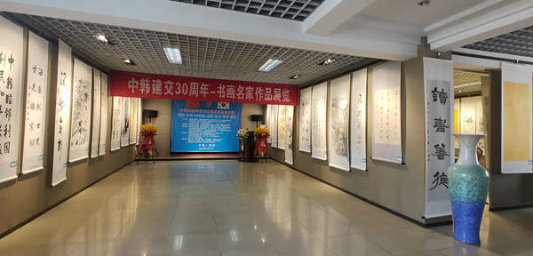 9月17日,由民建淄博市委会、淄博市文联、淄博市政协书画院、淄博市青少年宫、中共张店区委统战部、张店区文联、华夏孝文化研究会、韩国国际青少年文化学术交流协会、仁川市美术家协会、仁川市书法家协会主办,民建张店区委会、淄博姜氏艺术学校(淄博书画学校)、中国民间收藏研究会山东分会等单位承办的-“庆祝中韩建交30周年”文化艺术交流活动暨全国书画名家作品展览在淄博姜氏艺术学校美术馆(北方艺术馆)如期开幕。