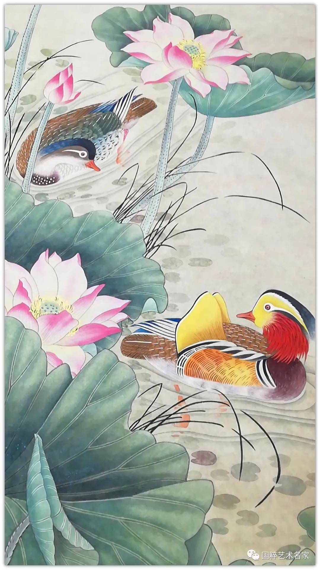 展卷细品,她笔下的花鸟,取象于平中见奇,淡中见雅,运用条幅与方形的构图,使其韵味无穷。看她的作画,很强烈的感觉到用线的流畅、柔和、霸气和俊美,时时透出一股灵气。在花与鸟之间,点缀着或黄、或青、或深、或淡的枝叶,在静与动之间,呈现出一片平静祥和的气氛。她笔下的花鸟可谓是形神兼备,栩栩如生,构思巧妙。