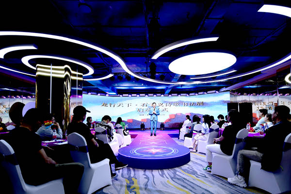 石子义先生致辞之后,以中国光影平面油画创始人于江先生为首的在京文艺界人士及观众代表组成的启动嘉宾一起上台,与石子义先生共同按下了象征展览启动的启动键,现场掌声雷动,镁光灯闪烁,留下了美好的瞬间。
