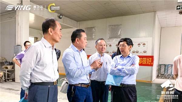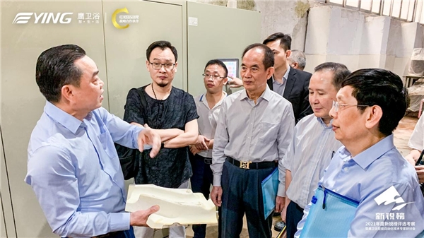 专家组一行在戴总的陪同下参观了鹰卫浴佛山生产基地与重点了解鹰卫浴自主研发的高压连体创新技术——智能连体四模高压生产线,还不时驻足观看鹰卫浴各生产环节细节,了解佛山基地在绿色发展、产品研发、产品工艺、生产技术、质量把控、推广效果等方面的情况,同时与在场鹰卫浴高层领导进行深入交流,并给予专业评价与建议。