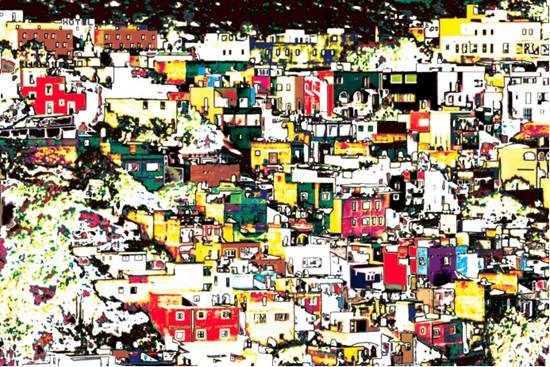 太阳把光反射到地球上时,光已经穿过了数不清空间的物质。光在空间与同一种物质碰撞时,因物质所处的空间位置不同会产生不同的光效,在与不同的物质碰撞时也会产生不同的光效。也正是如此,我才能够从任何一张照片中分离出不同的光色,并且还能够从这张照片中裂变出数不清的色彩所形成的结构图案。这就意味着,人们可以从空间的信息中分离出不同的色彩,可以从光图中裂变出不同色彩所构成的图案。从空间取出光效形成的图案是取之不尽用之不竭的,只要有光,就可从不同的物质上分离和裂变出不同的光效图案。