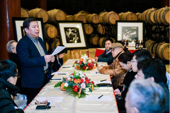 长城华夏酒庄总酿酒师董宣为现场嘉宾详细介绍了长城华夏酒庄的历史和地理风貌特征,本次联名款产品的生存酿造工艺特点,细致讲解了本次产品的独特价值。